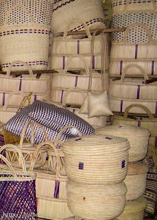 hão-de ser de folhas de palmeira... são assim molinhos e maciozinhos!! e tinha que haver tradição, com tanta palmeira por aqui... eu ainda tenho um de Tete, no género de uns que aqui estão.. e umas alcofas dos bonecos ;)